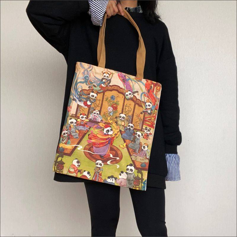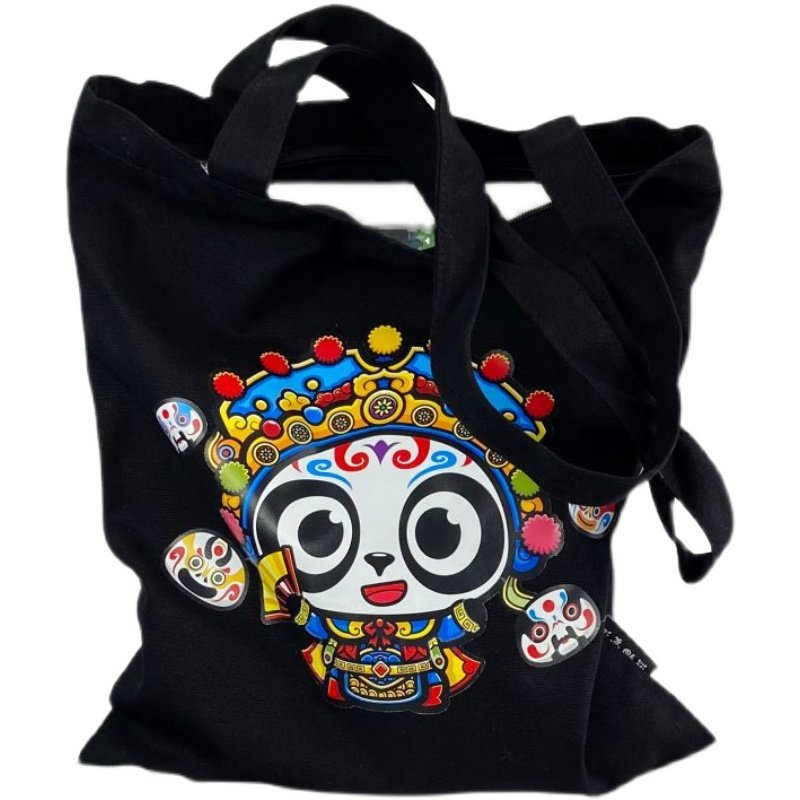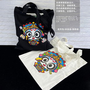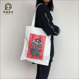 大容量熊猫帆布包文艺简约原创国潮印花包包成都旅游纪念品购物袋