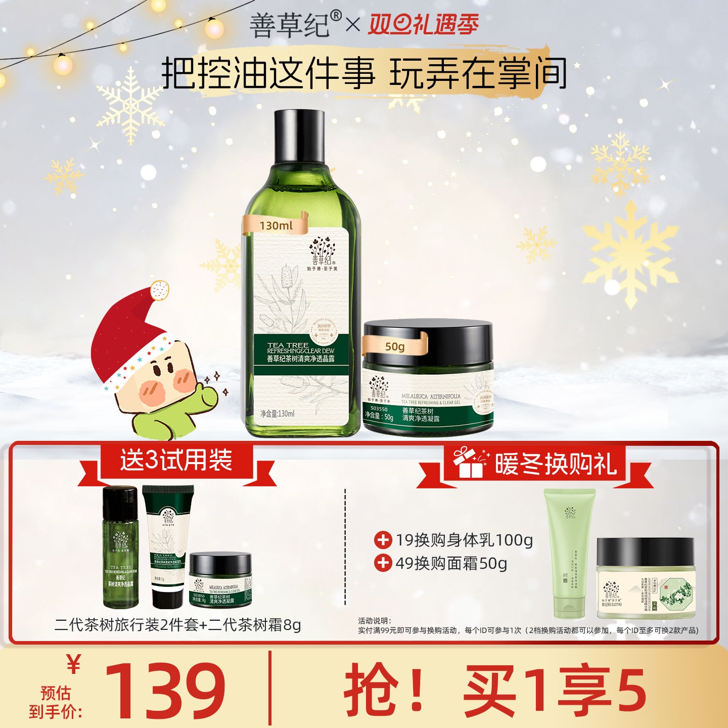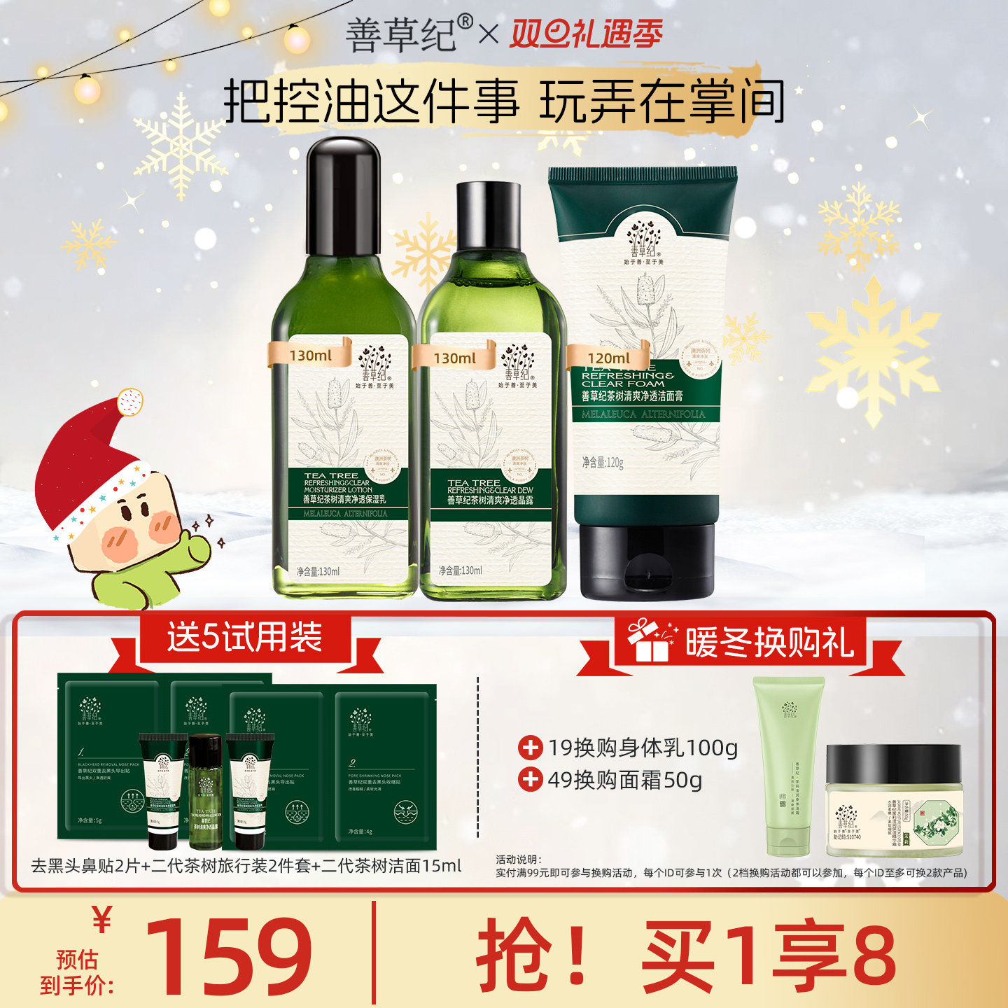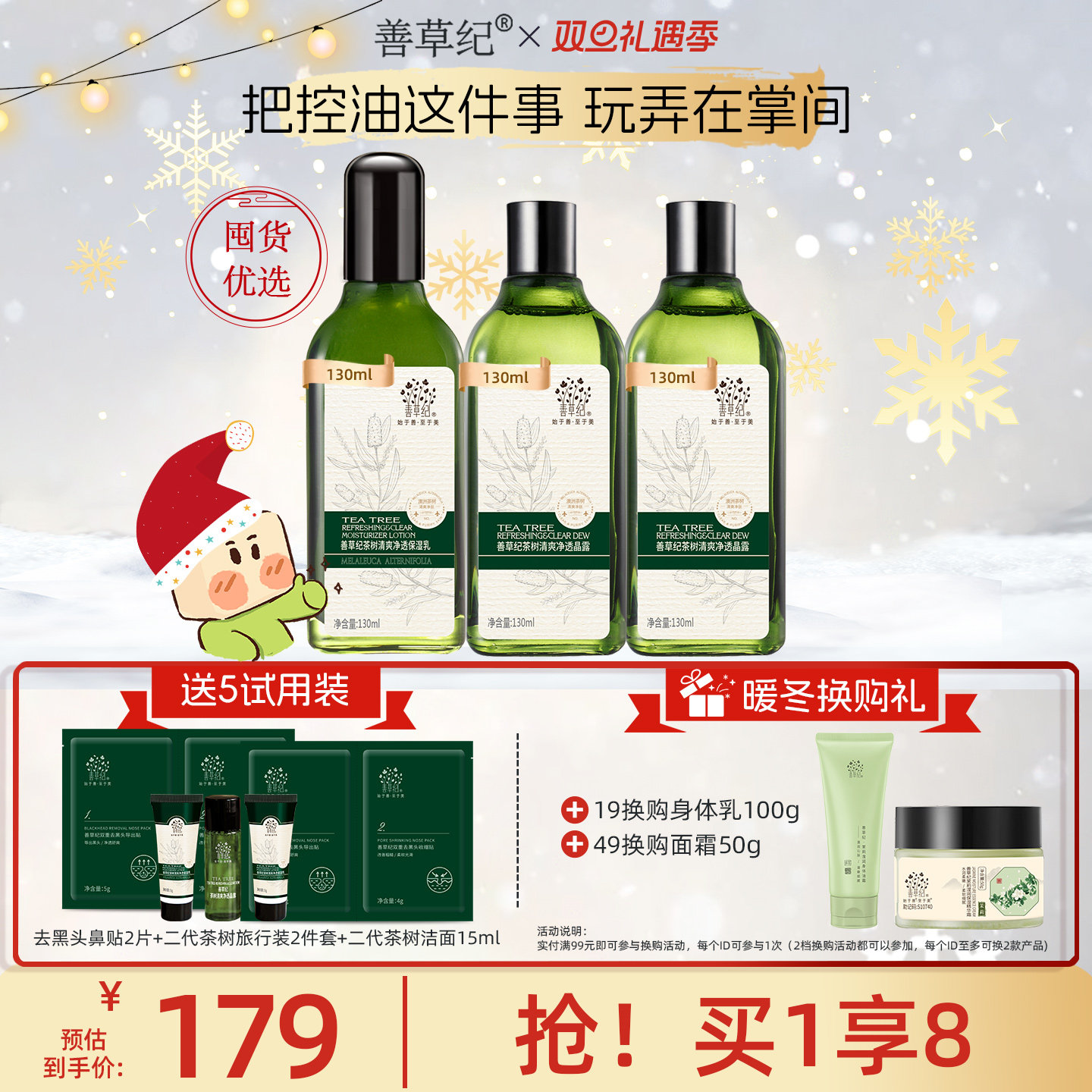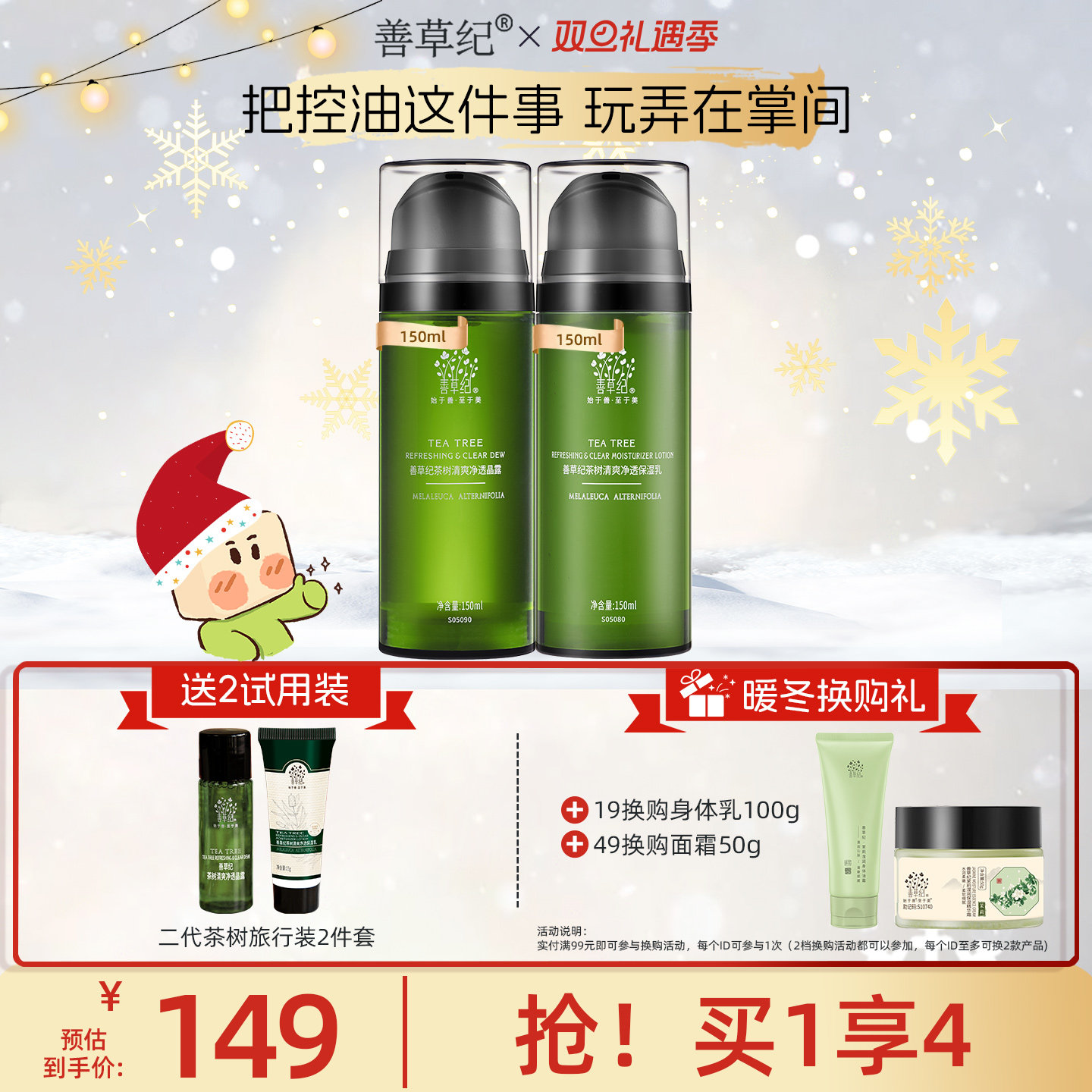 控油收敛学生护肤品 深层补水保湿 善草纪二代茶树水乳套装 油皮冬季