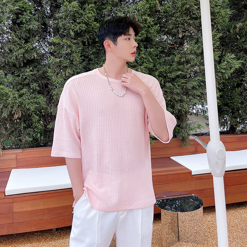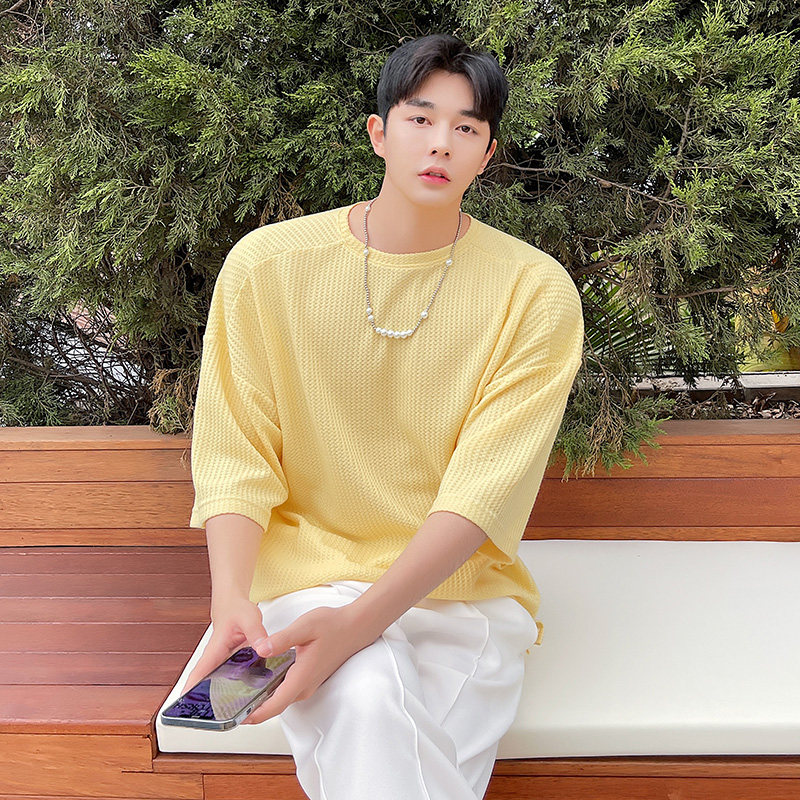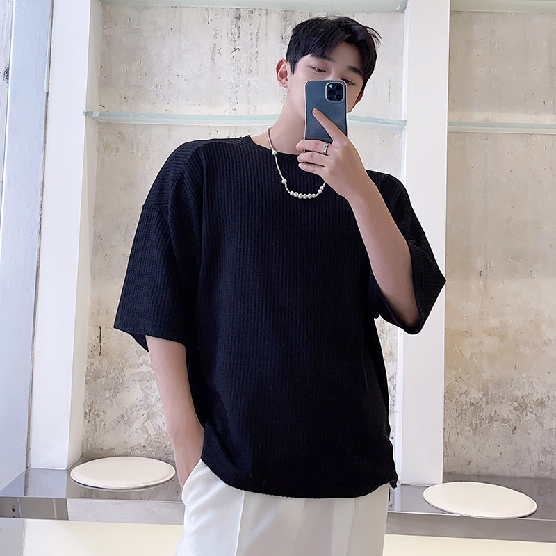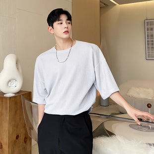 小众薄款 t恤衫 轻奢网红五分袖 设计感宽松休闲短袖 潮 T恤男韩版 夏季