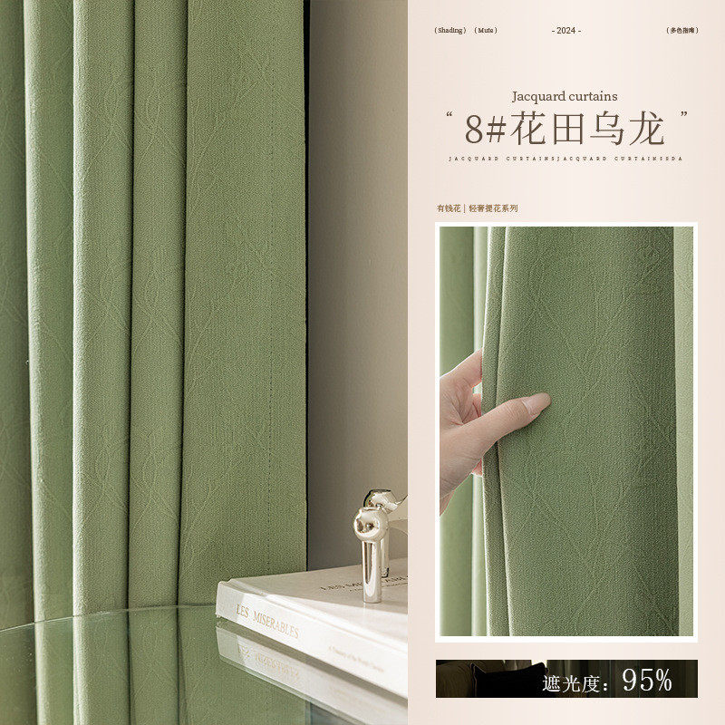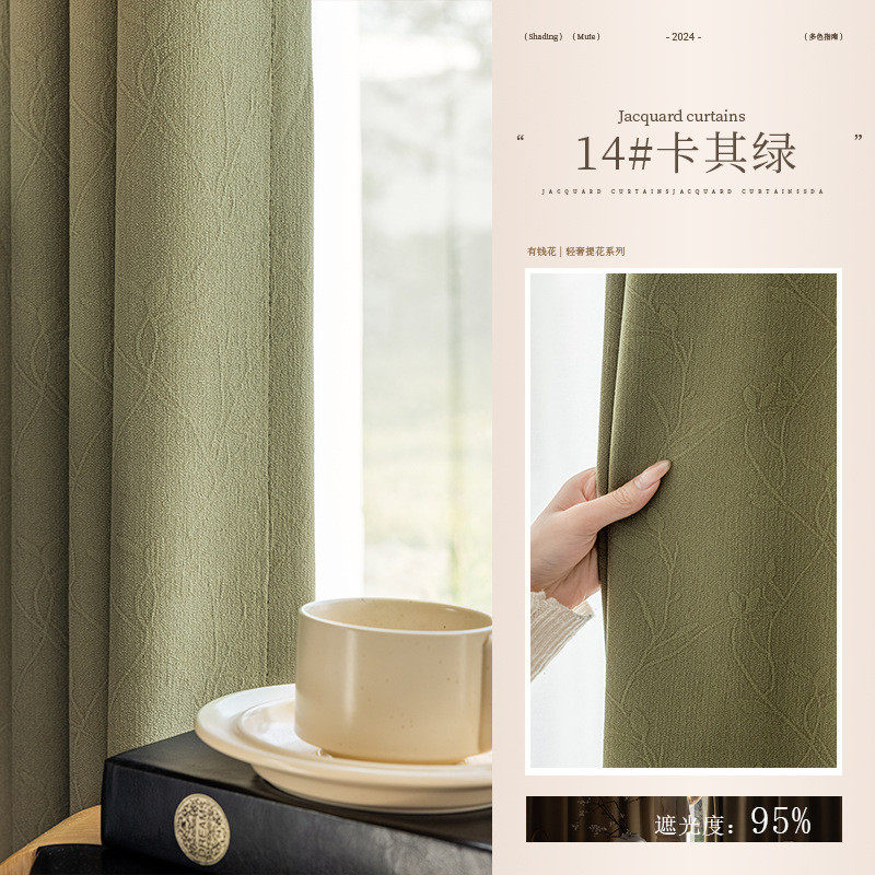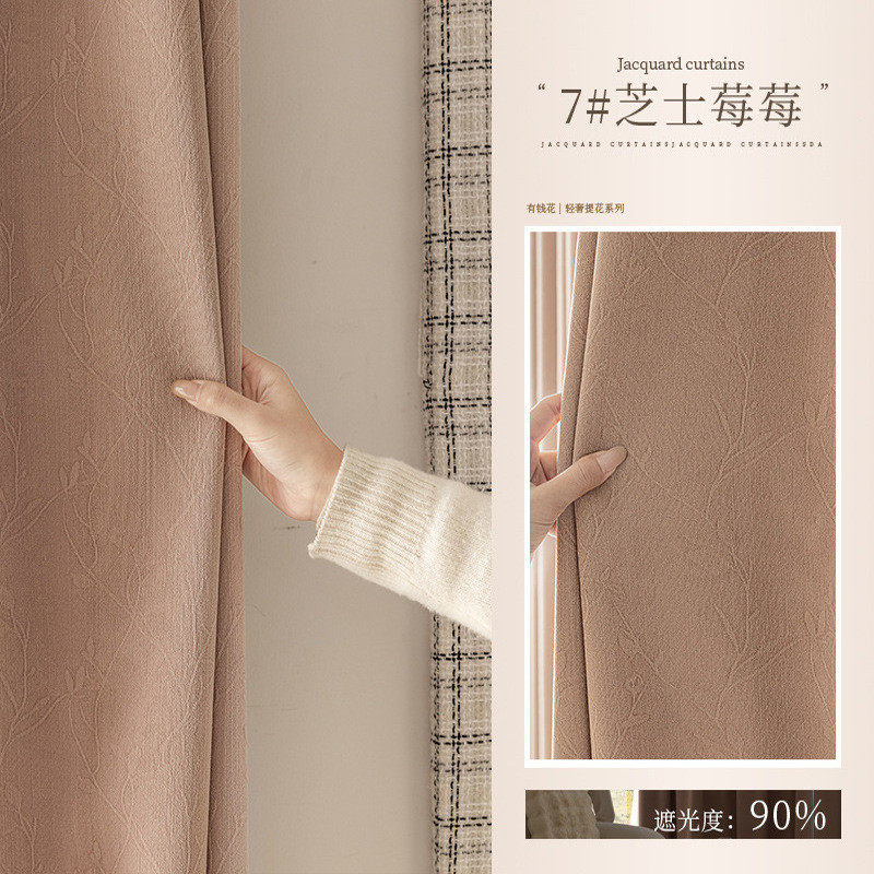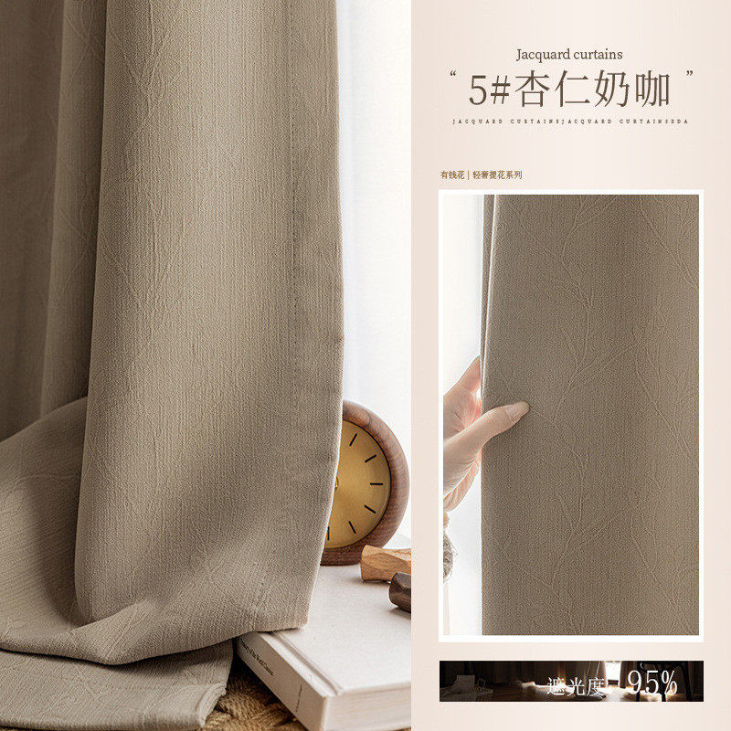 可加高3.1米雪尼尔花有钱纯色暗纹全遮光窗帘奶油原木风客厅卧室