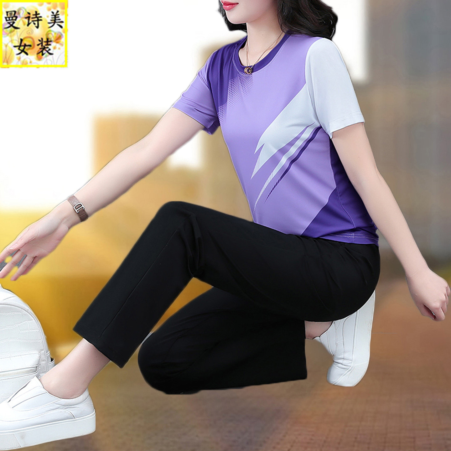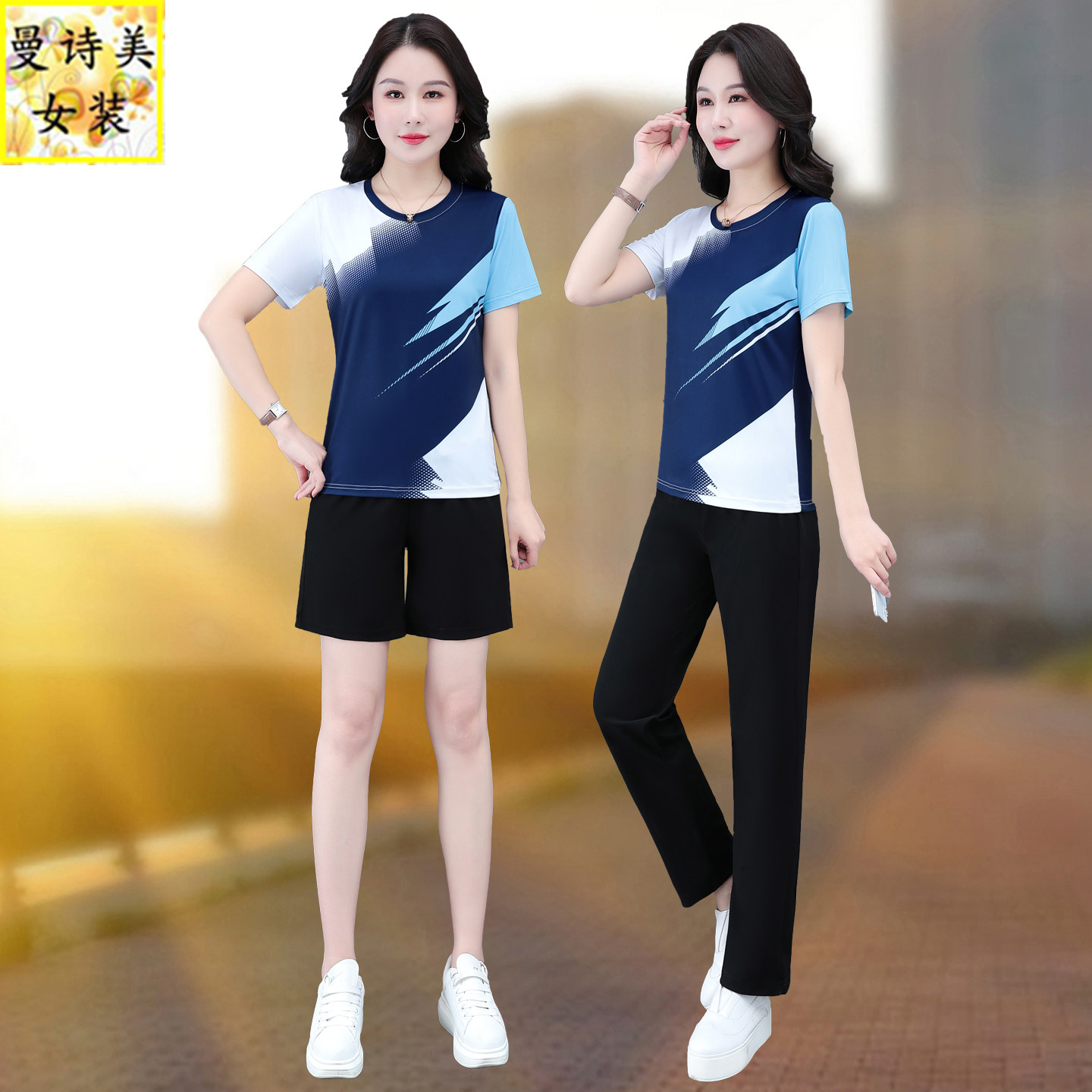 女夏季 或长裤 2026薄款 短裤 两件套 透气速干短袖 圆领羽毛球运动套装