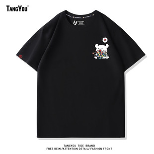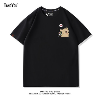 线条小狗联名短袖 男女情侣学生纯棉百搭T恤 上衣卡通简约印花夏季