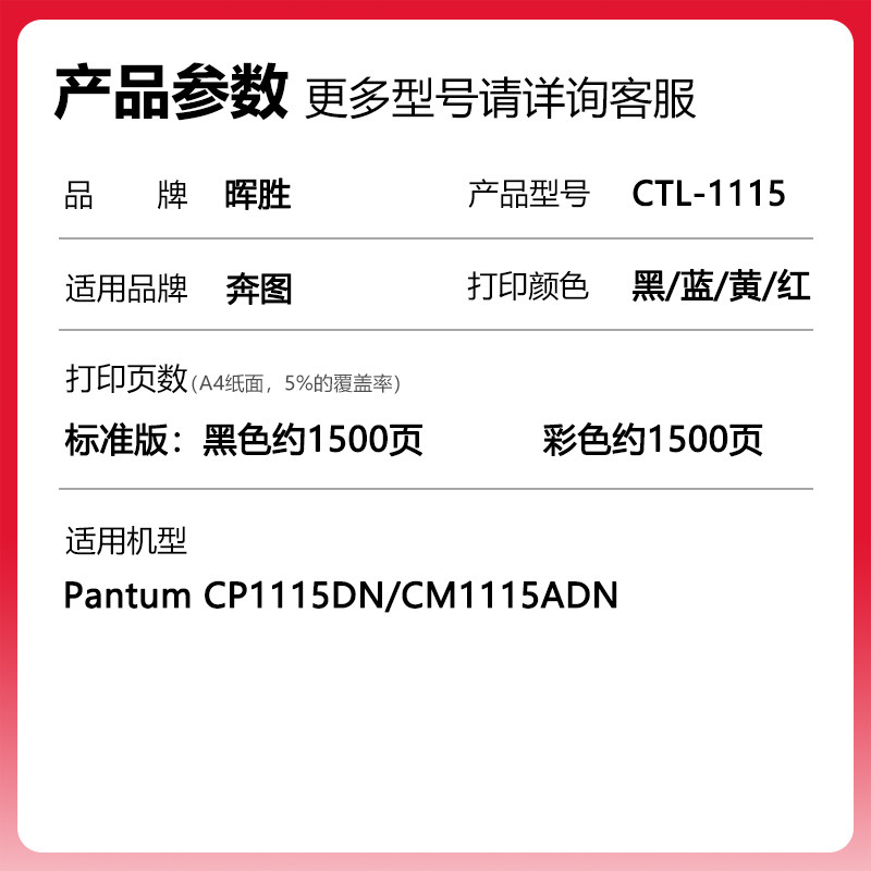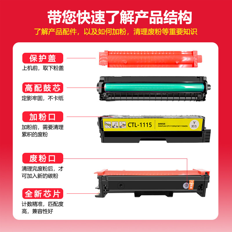 晖胜适用奔图CTL 1115碳粉盒墨粉 1115H硒鼓CP1115DN彩色打印机墨盒CM1115ADN多功能激光打印机粉盒CTL