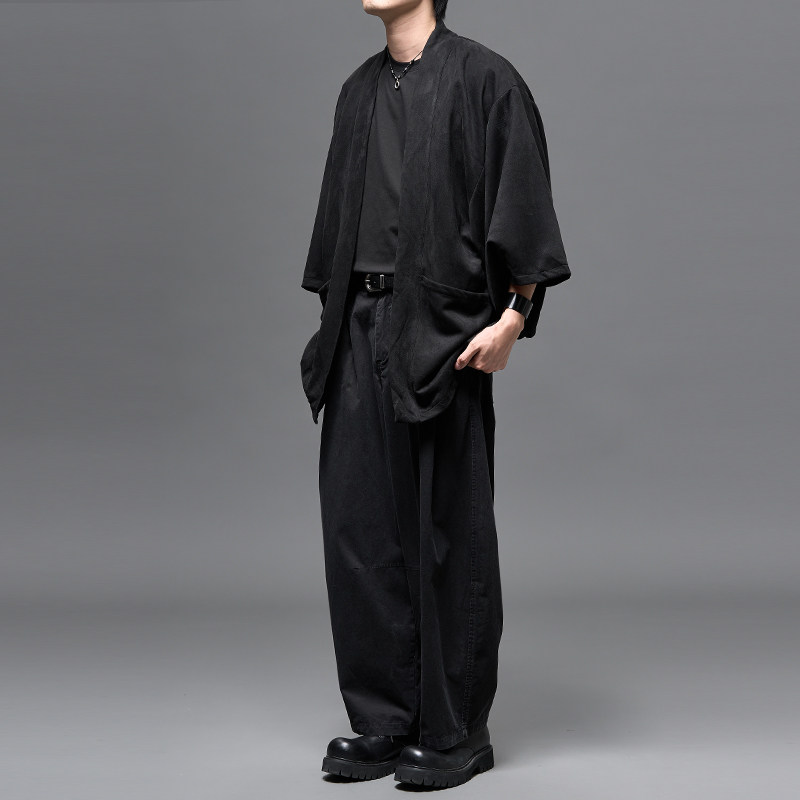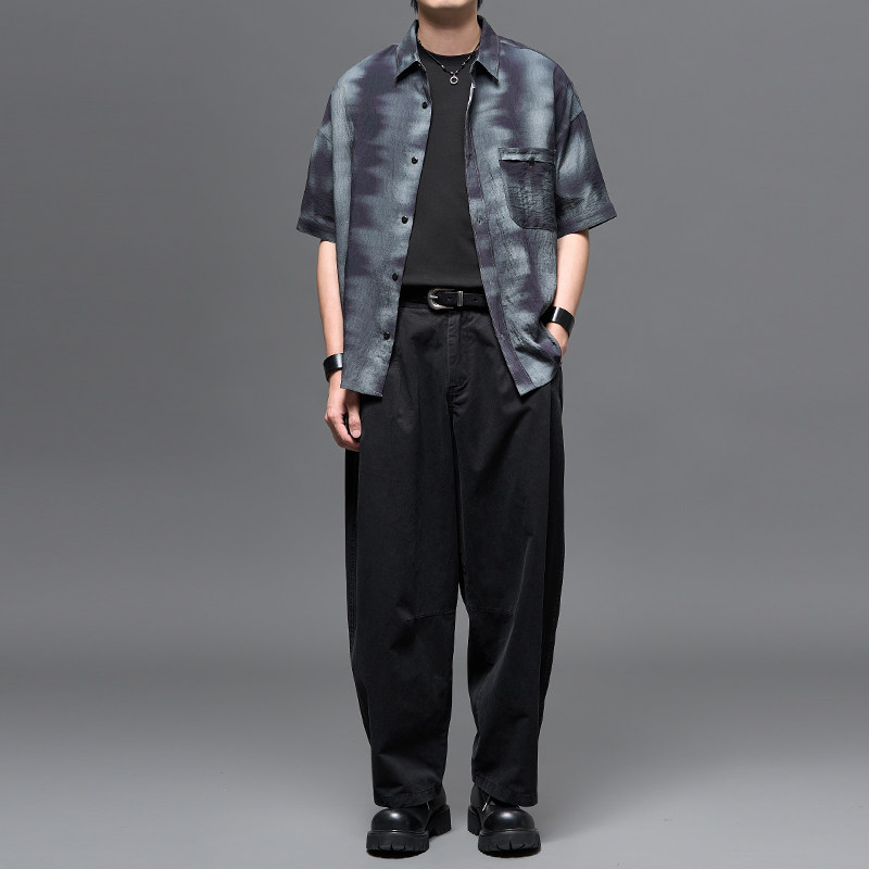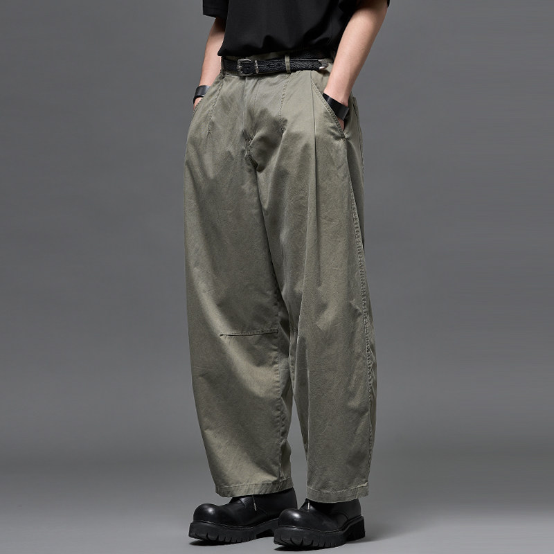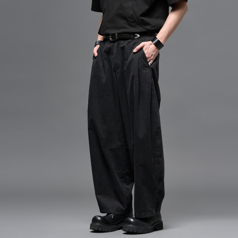 百搭通勤长裤 高品质洗水棉日系复古宽松阔腿弯刀裤 男春夏直筒时尚