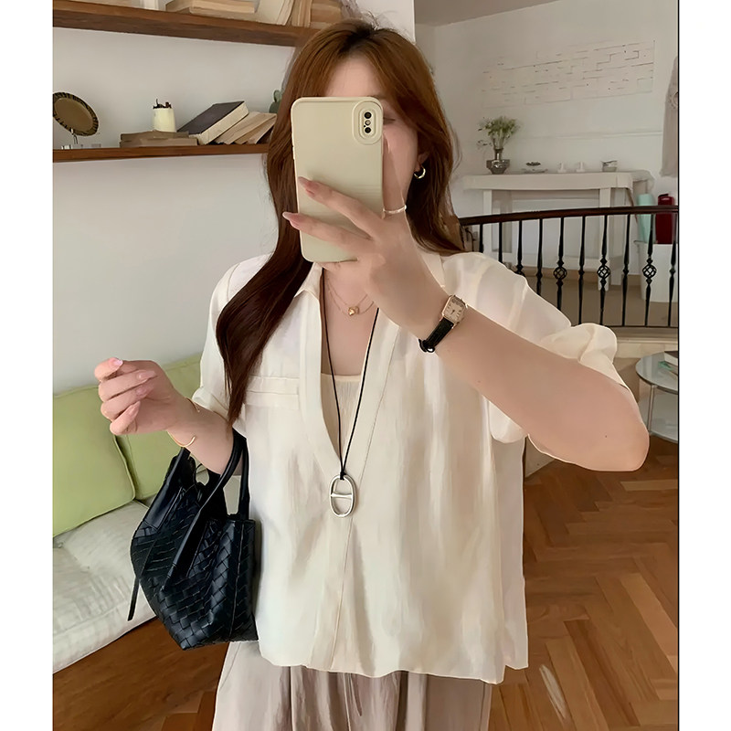 气质衬衣打底衫 假两件衬衫 翻领纯色时尚 新款 D2027 上衣女2025夏季