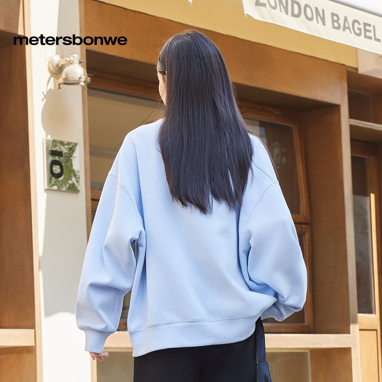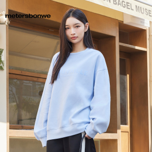女 潮流字母印花宽松休闲百搭纯色针织衫 美特斯邦威卫衣女春季 新款