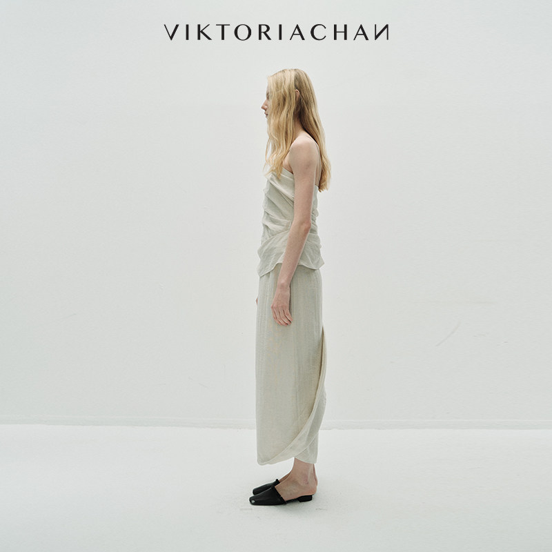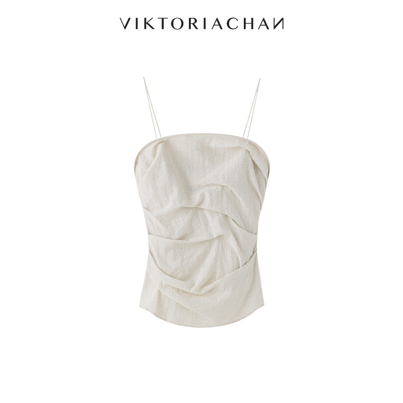VIKTORIACHAN25PF早秋成衣系列 不规则立体褶皱收腰吊带上衣