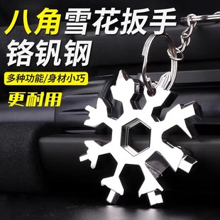 多功能雪花扳手八角小板手不锈钢万能工具梅花内六角便携式 钥匙扣