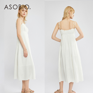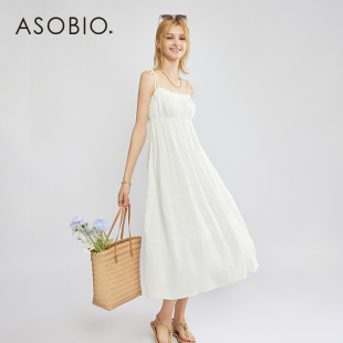 Asobio亚麻飘逸百褶蛋糕长裙夏季 度假风吊带连衣裙仙女裙长裙120