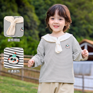 童装 嘟嘟家宝宝T恤春季 衣服女童春装 男童新款 儿童上衣条纹打底衫