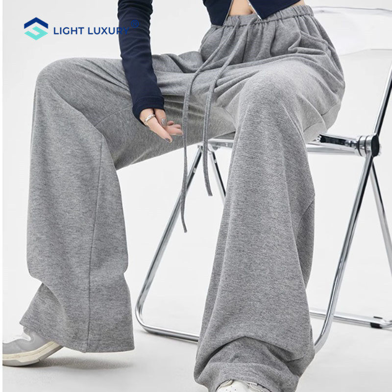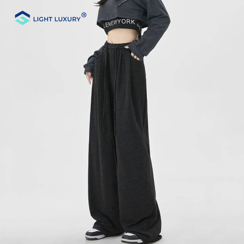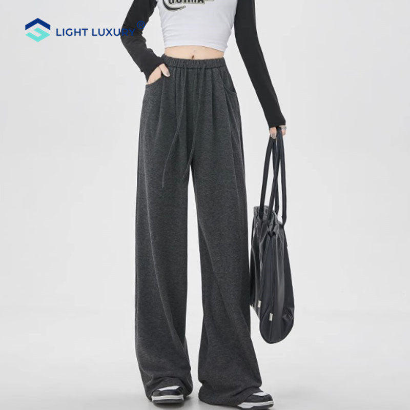 慵懒休闲阔腿裤 高腰垂坠感软糯宽松运动裤 女早秋新款 深灰色糯米裤