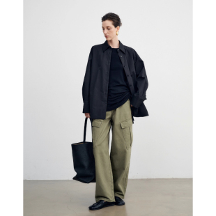 流行女 新款 百家好复古绿色宽松廓形纯棉多口袋阔腿高腰工装 牛仔裤