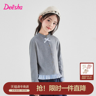 大童女孩儿童时尚 笛莎官方旗舰童装 新款 秋季 百搭外套 女童针织开衫