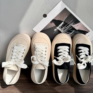 女chic鞋 厚底小白鞋 子百搭2025春季 两穿帆布鞋 新款 丑萌大头面包鞋