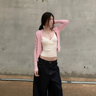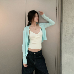 T恤显瘦防晒百搭休闲上衣 +吊带两件套长袖 E7Q8 韩系纯欲辣妹罩衫