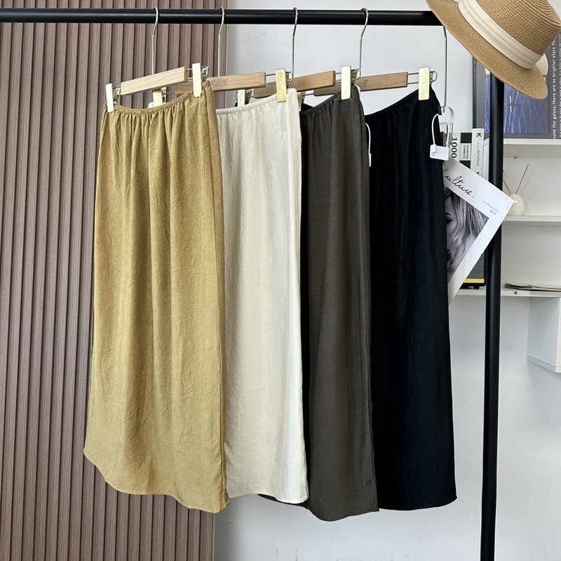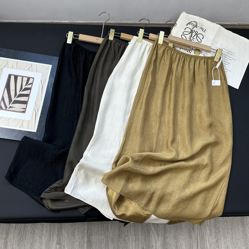 真丝平替 100醋纤凉感透气舒适高腰开叉直筒裙百搭中长半身裙女夏