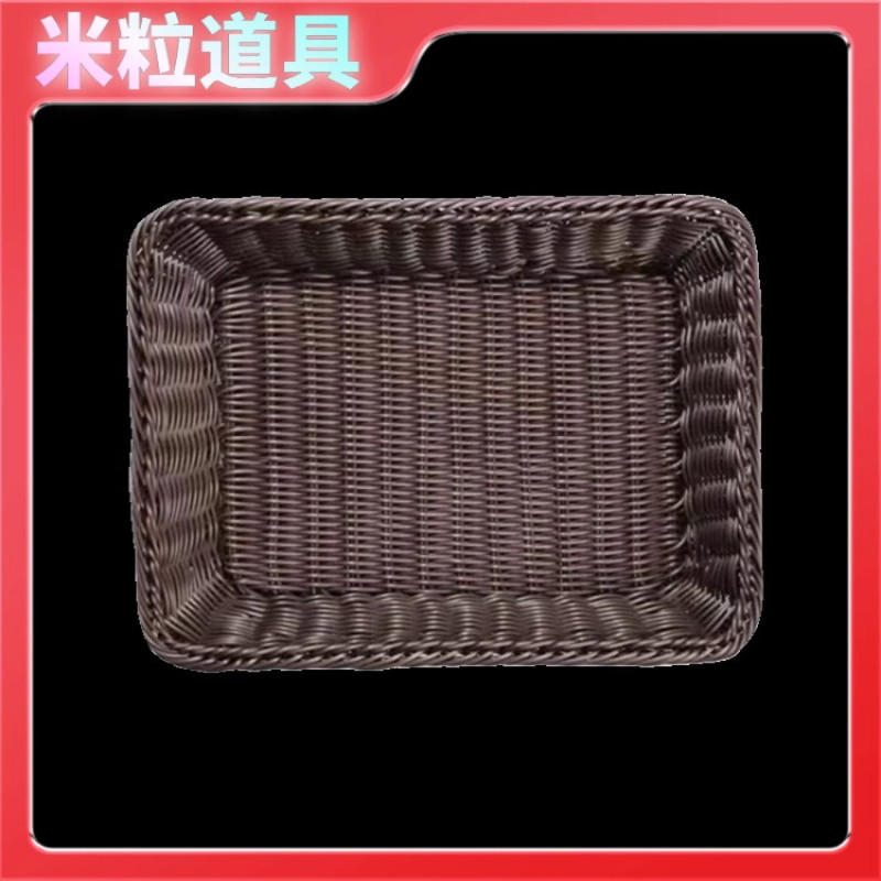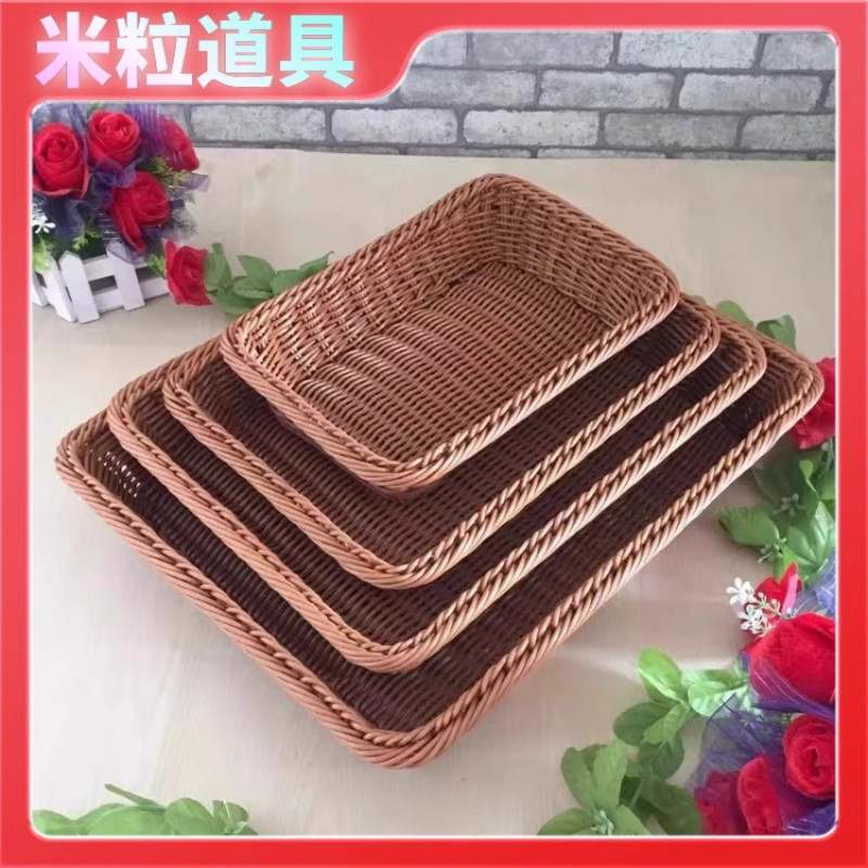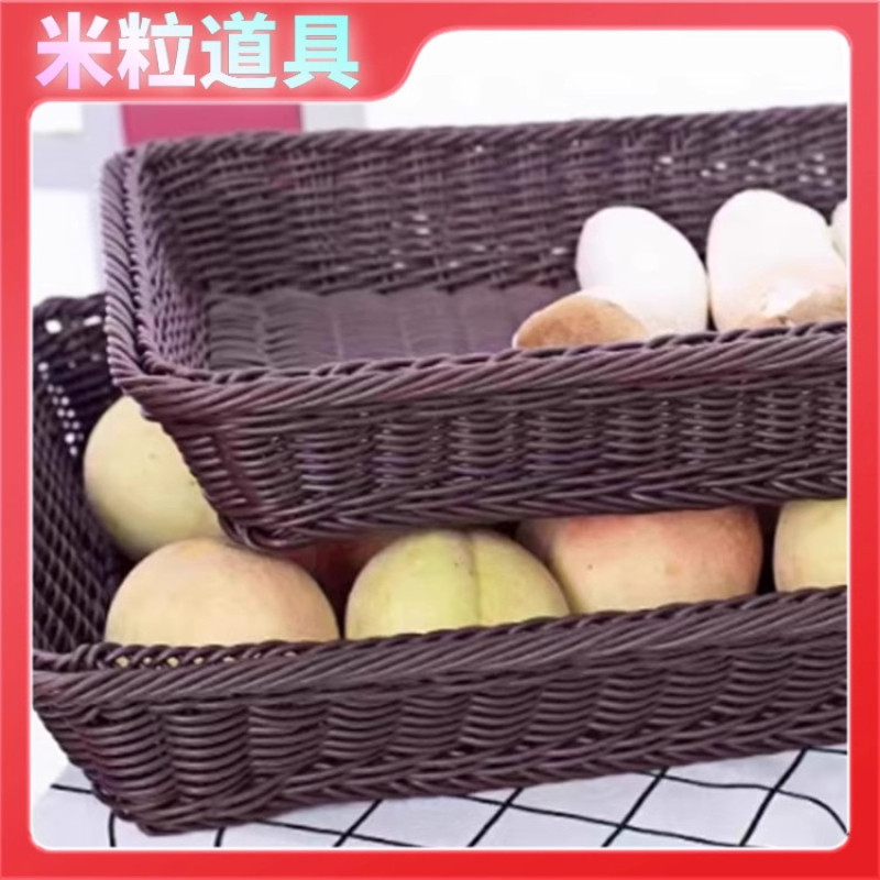 超市陈列筐展示篮塑料仿藤编水果篮面包筐零食收纳篮子编织藤编筐