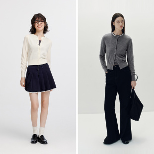 商场同款 新款 森马针织开衫 撞色圆领显瘦2025秋季 羊毛上衣 女短款