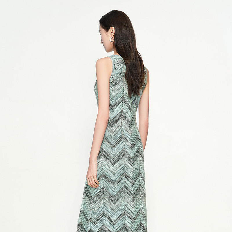 吊带裙 显白灰绿条纹连衣裙女百搭修身 NEELLY纳俪商场同款 春秋新款