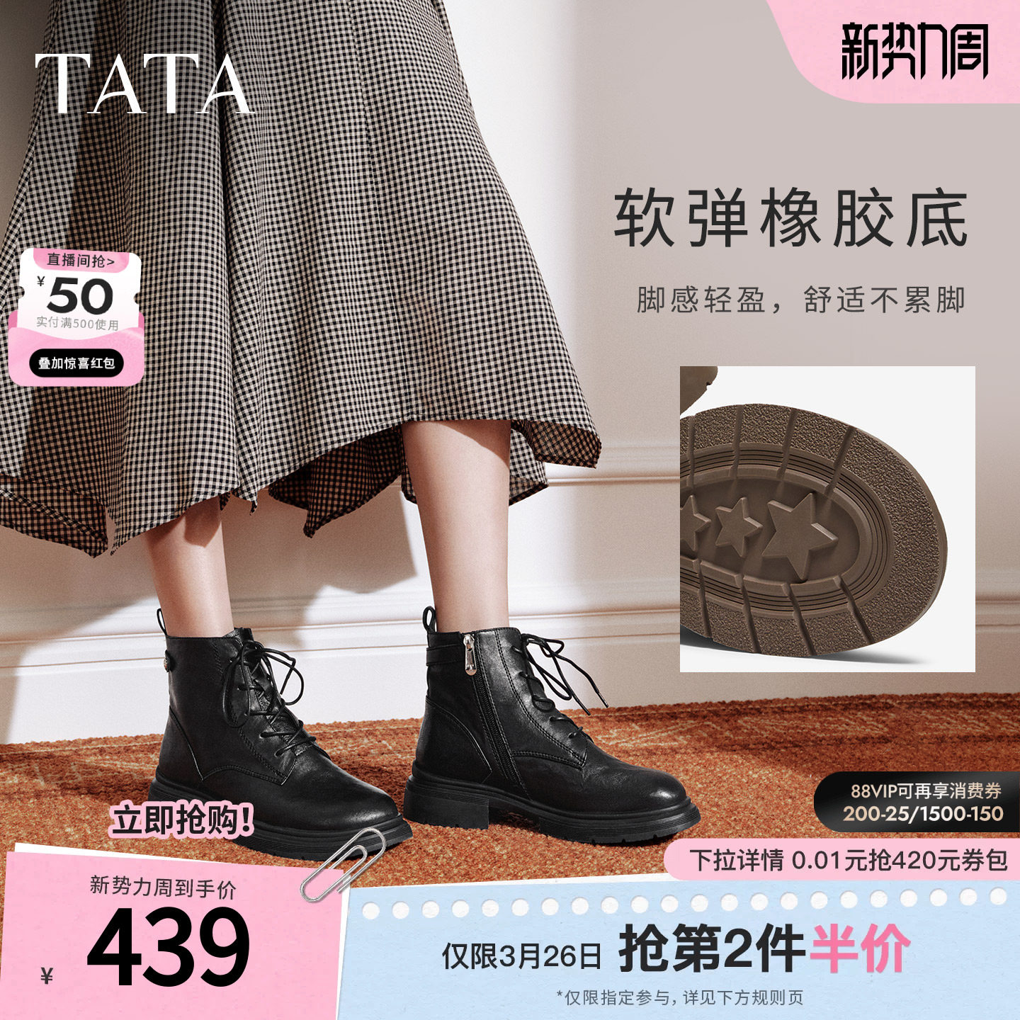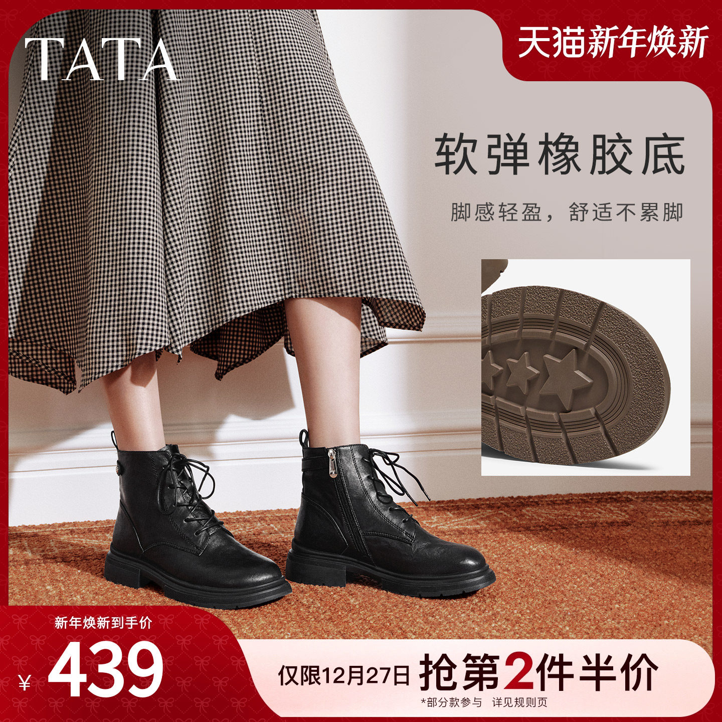 靴厚底马丁靴羊皮短靴WXB06DD5 加绒英伦工装 TATA他她靴子女鞋 冬季