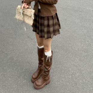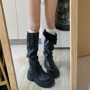 黑色高筒靴子夏季 显瘦增高小个子粗腿骑士靴 厚底长筒靴女2026新款
