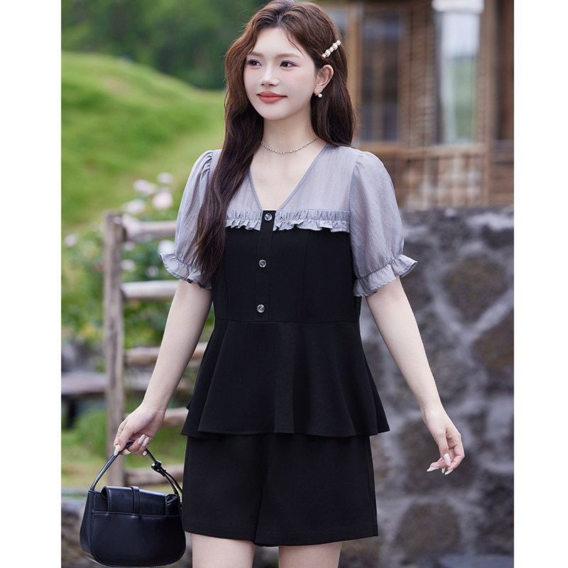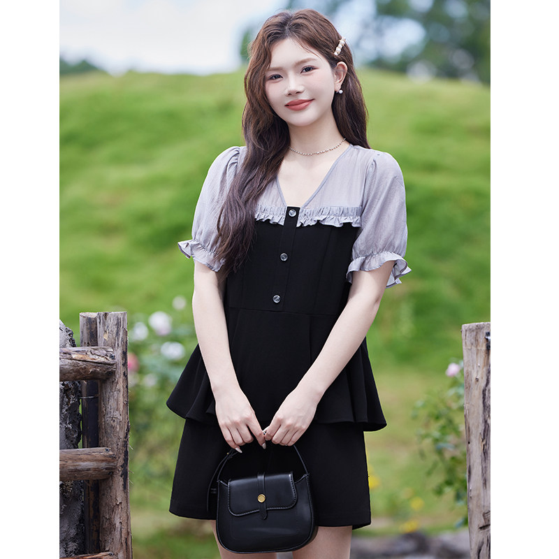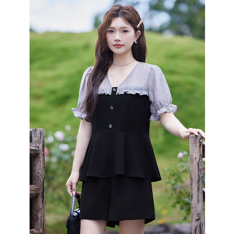 假两件小衫 绮娑大码 V领收腰遮肉显瘦短袖 新款 胖MM上衣女2026夏装