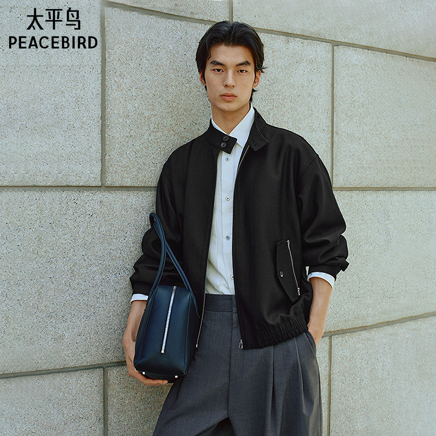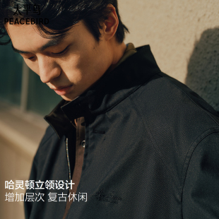 太平鸟男装 行政夹克宽松老钱通勤茄克立领哈林顿质感外套刺绣上衣