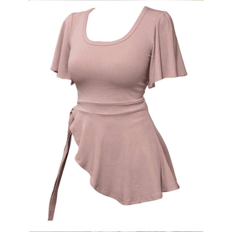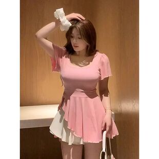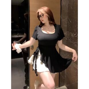 T恤女胖mm中长款 不规则U领收腰短袖 遮肉显瘦上衣240斤 夏季 大码