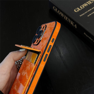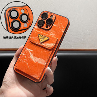 皮质绒新款 适用苹果17promax手机壳潮牌iphone16pro保护套镜头全包15p防摔高级感复古14可插卡包12奢华13橙色