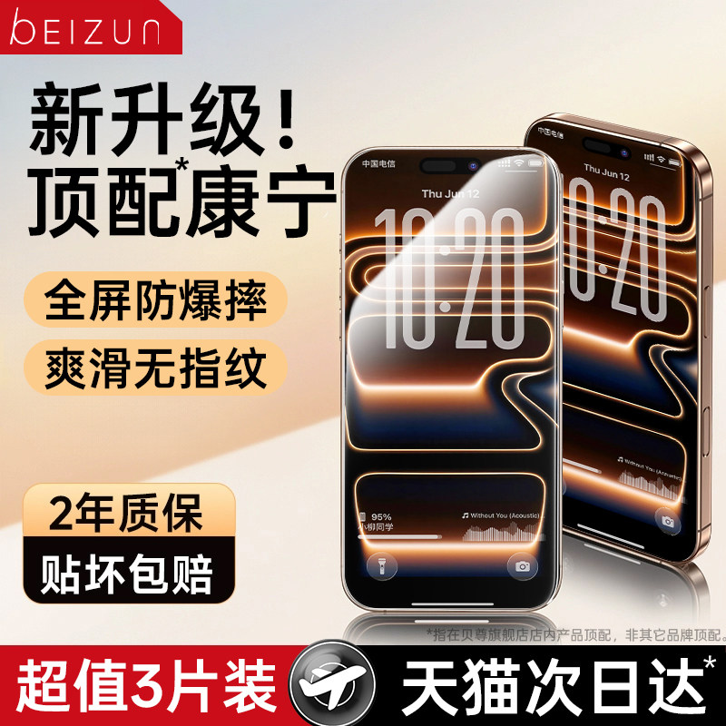 贝尊适用苹果17promax钢化膜iPhone16Pro手机膜15贴膜14Plus新款 13全屏12覆盖11听筒防尘IP防指纹防摔Air防窥