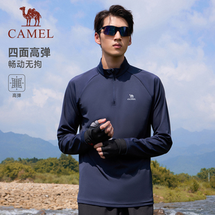 骆驼运动速干衣女秋冬季 T恤瑜伽训练服跑步健身上衣男 立领长袖