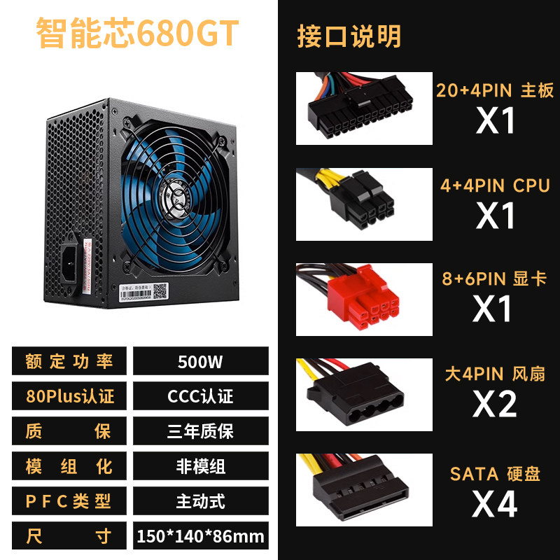 400W静音台式 4500额定300 机电脑主机电源 3200 金河田智能芯330