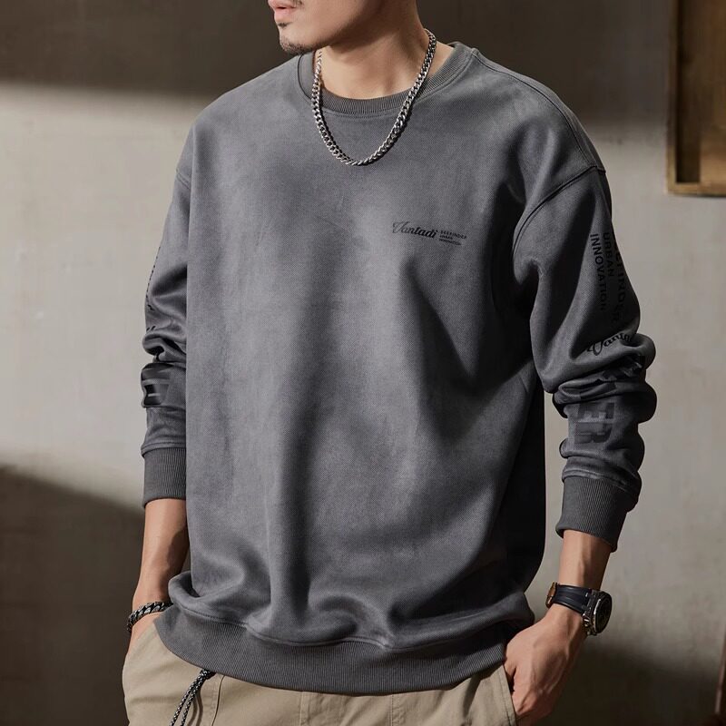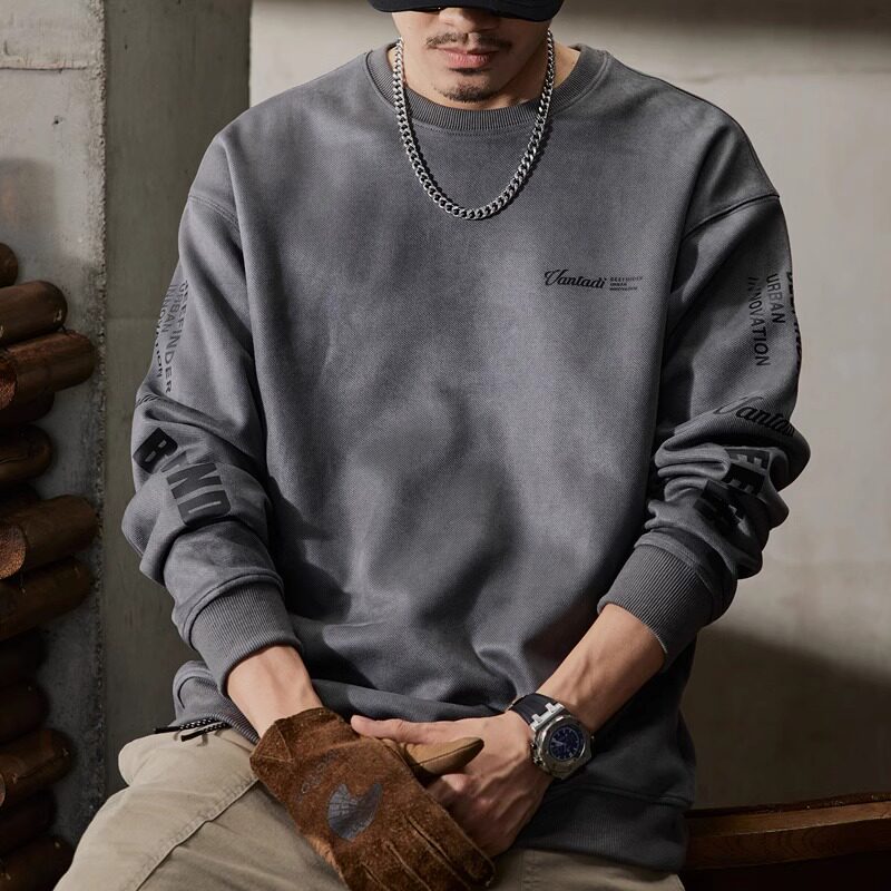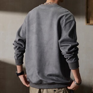 春秋高级感潮牌宽松上衣麂皮绒衣服男 重磅卫衣男士 大码 300斤美式