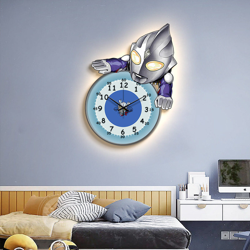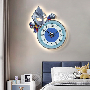 奥特曼挂钟客厅2024新款 饰画卡通挂画带钟表发光灯 男孩子儿童房装