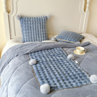 少女保暖兔毛绒四件套加厚牛奶绒抱枕被子两用汽车上靠垫枕头被新