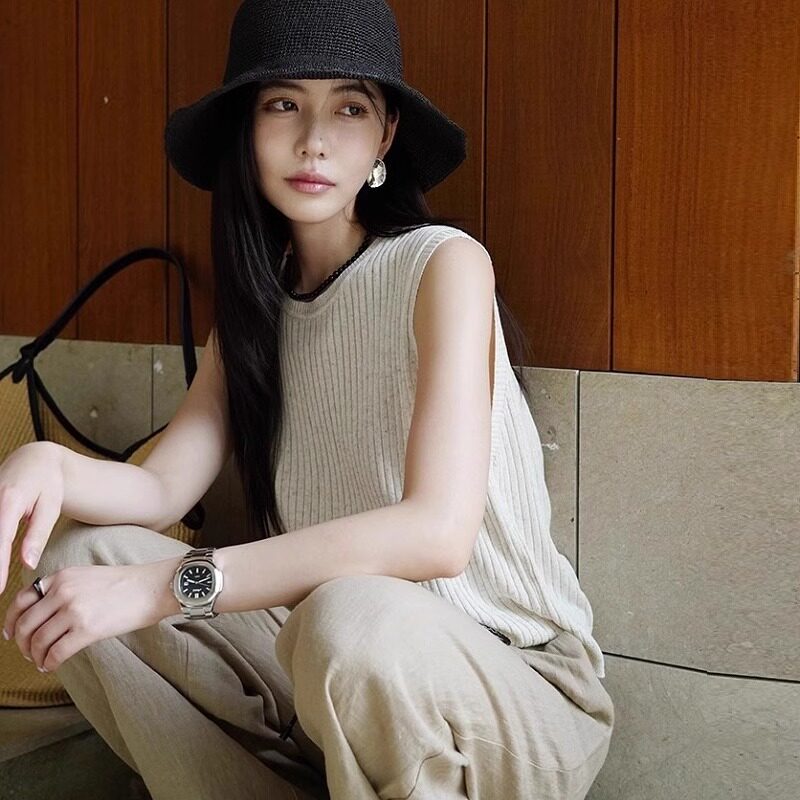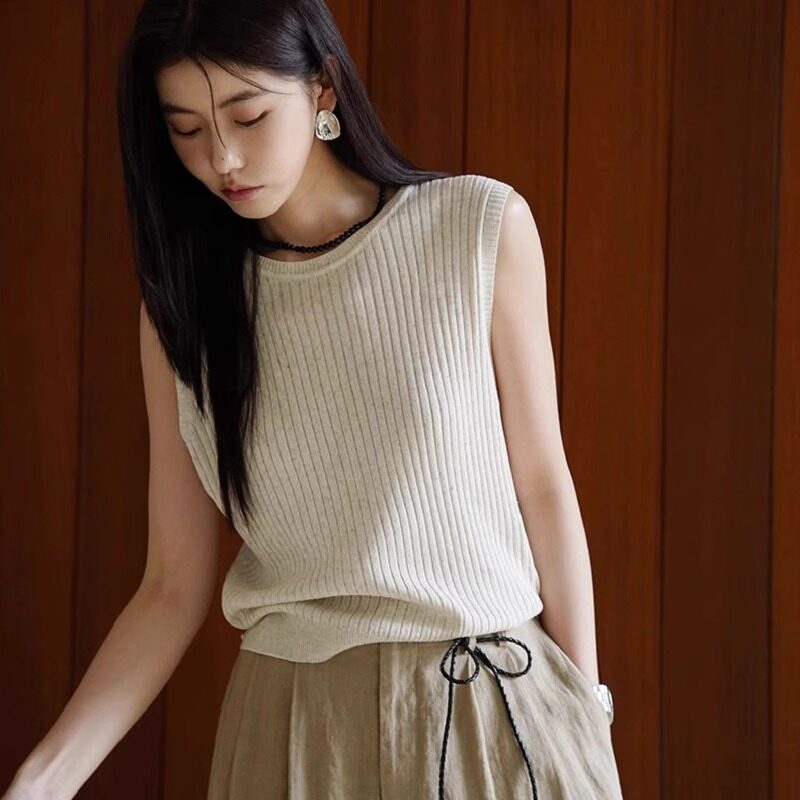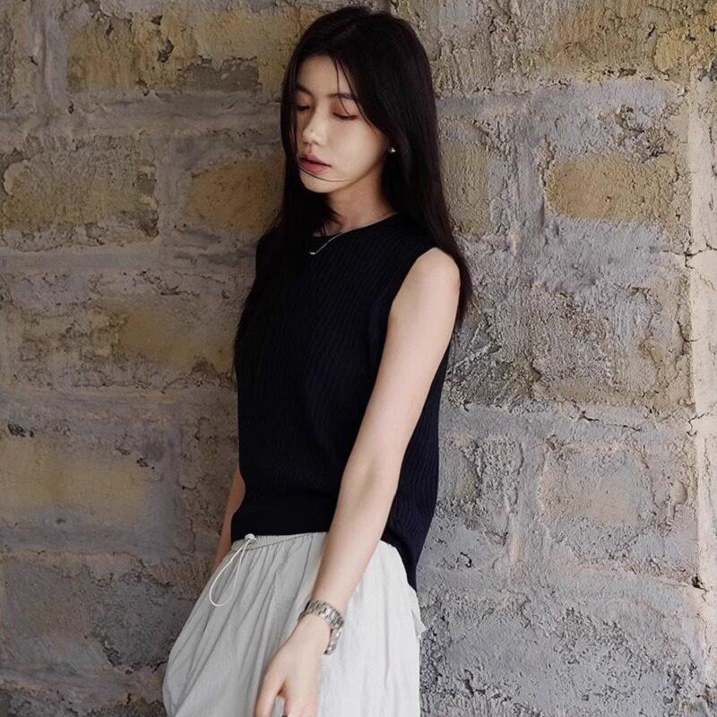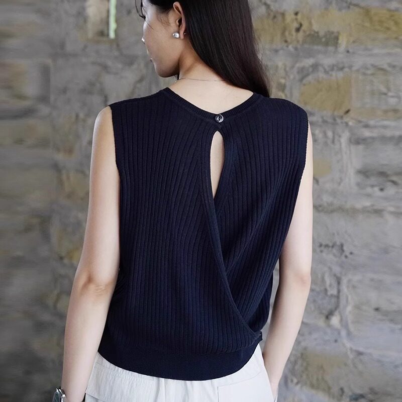 上衣女设计感小众交叉t恤大码 夏季 无袖 冰丝针织背心薄款 胖mm 新款
