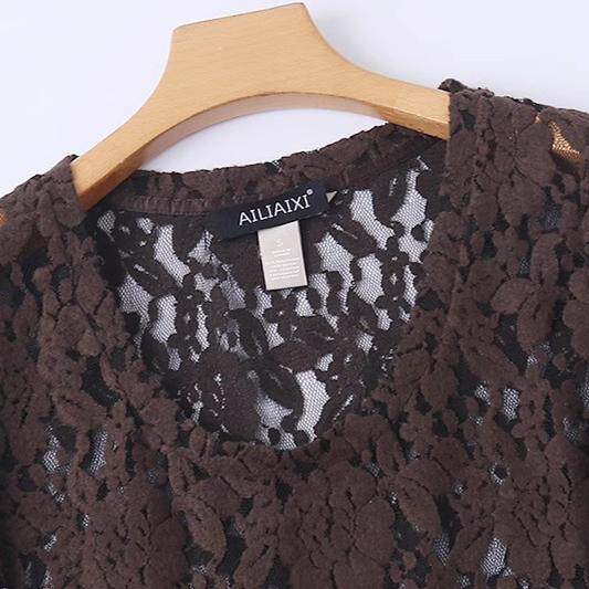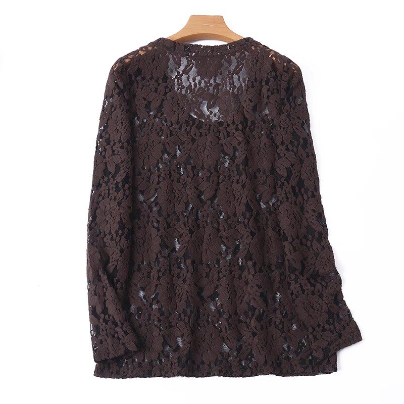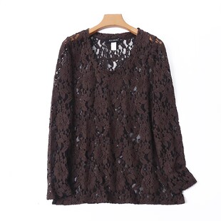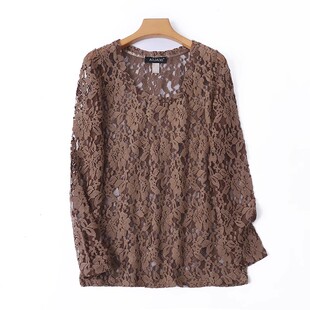 女春秋新款 针织钩花打底衫 时尚 甜美上衣D 圆领蕾丝长袖 T恤衫