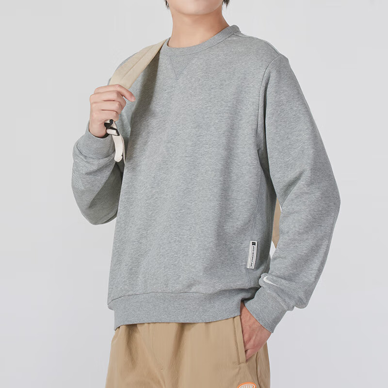宽松针织运动上衣简约男装 加绒圆领套头衫 卫衣男冬季 安踏休闲长袖