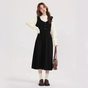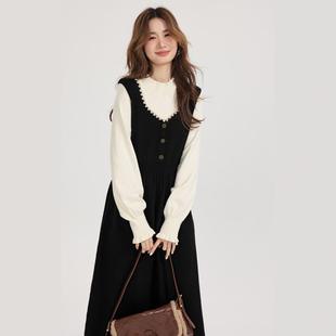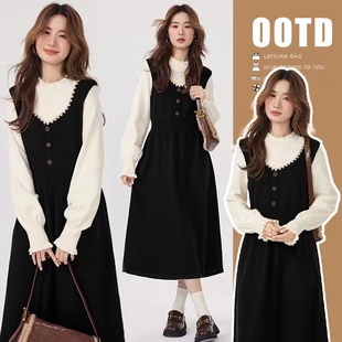 假两件孕妈高级感穿搭套装 婧麒孕妇装 大码 2025新款 连衣裙子秋冬款