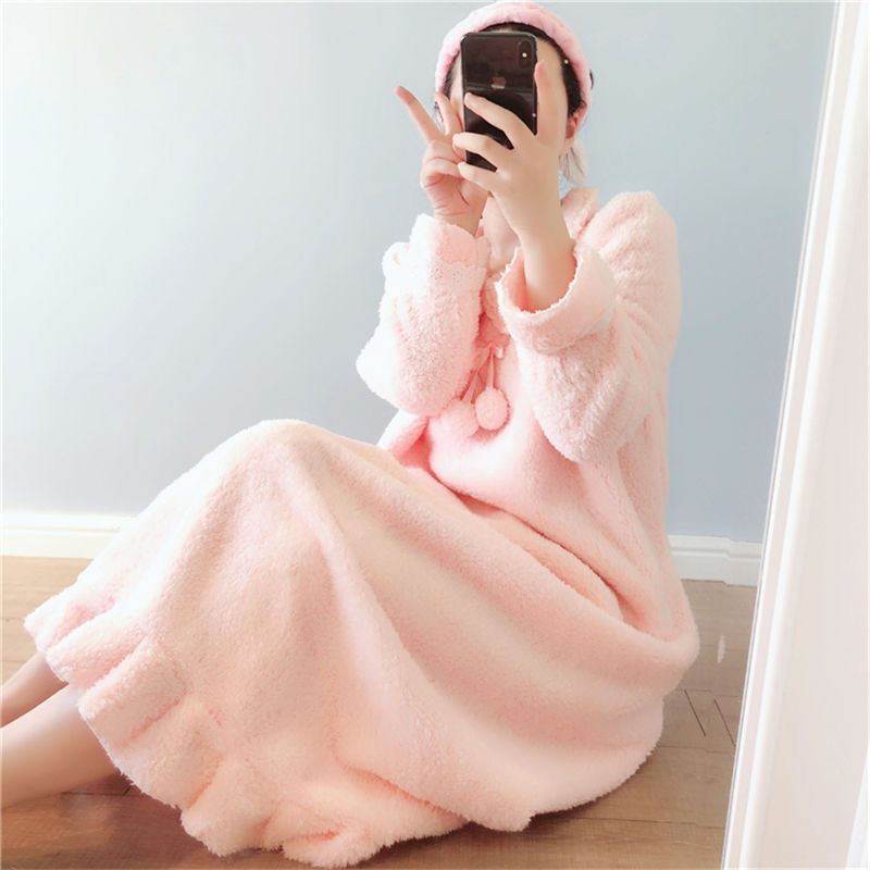 宽松孕妇装 过膝睡裙法兰绒保暖大码 家居服 睡衣女加厚长款 秋冬新款