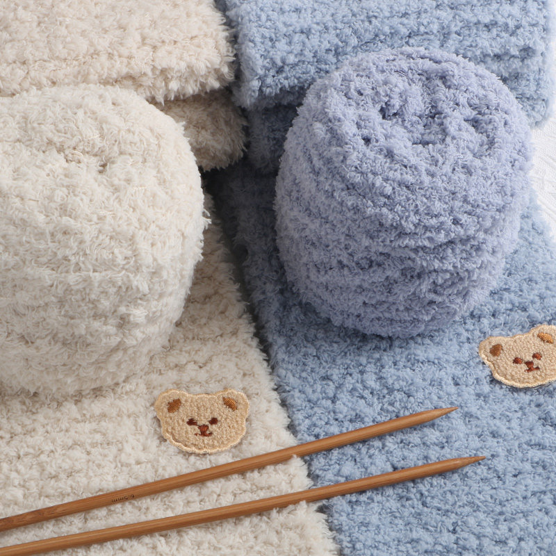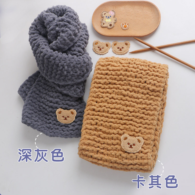 围巾手工编织diy材料包冰条线送女友小熊粗毛线团珊瑚绒自织礼物