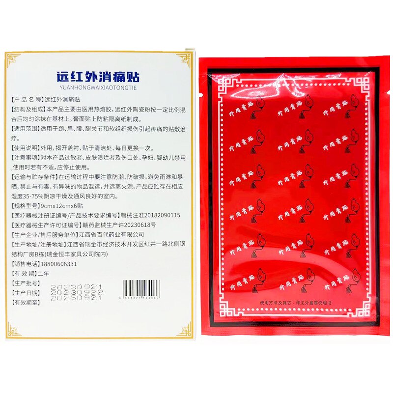 今古舒远红外理疗贴肩颈腰椎膝盖热敷膏药贴10片装 四面弹力布发热