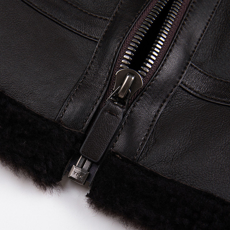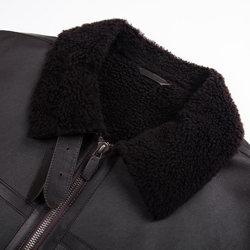 皮衣时尚 蓝豹男士 LAMPO 翻领皮毛一体皮夹克外套 绵羊皮