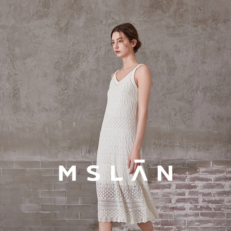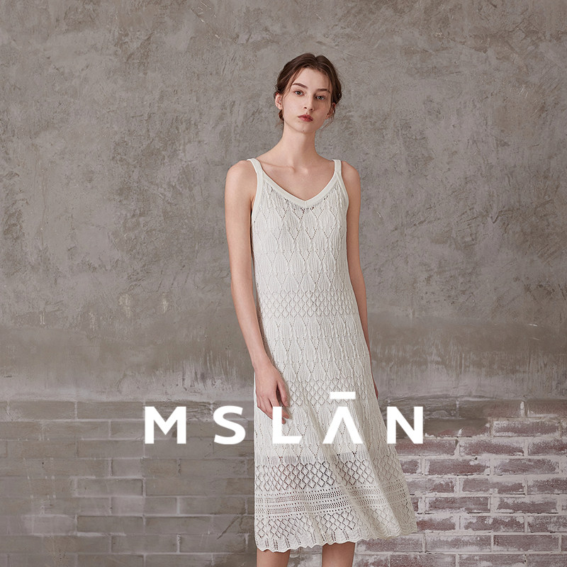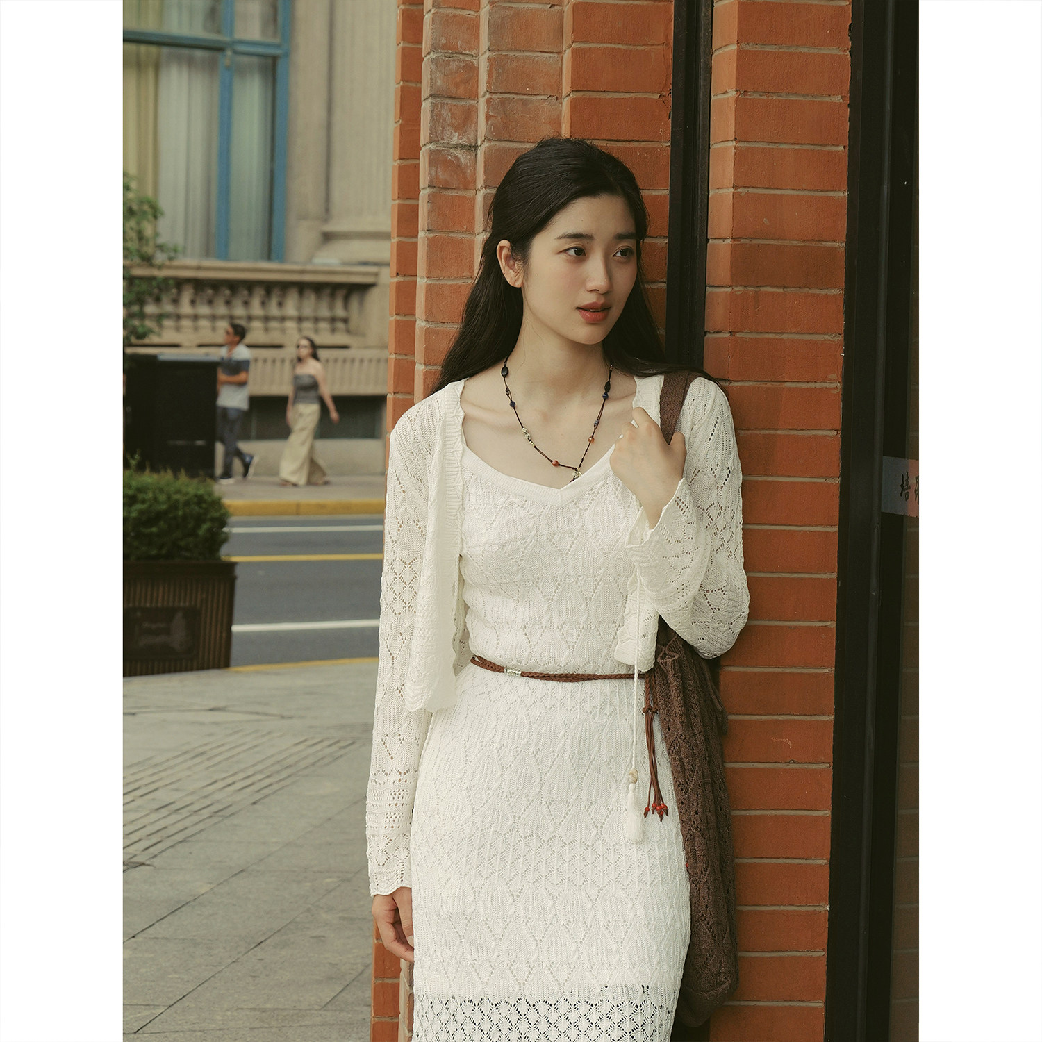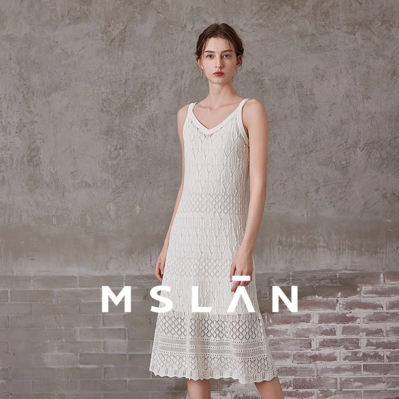 波西米亚 25秋慵懒度假风镂空针织浪漫V领吊带裙亚麻连衣裙 MSLAN