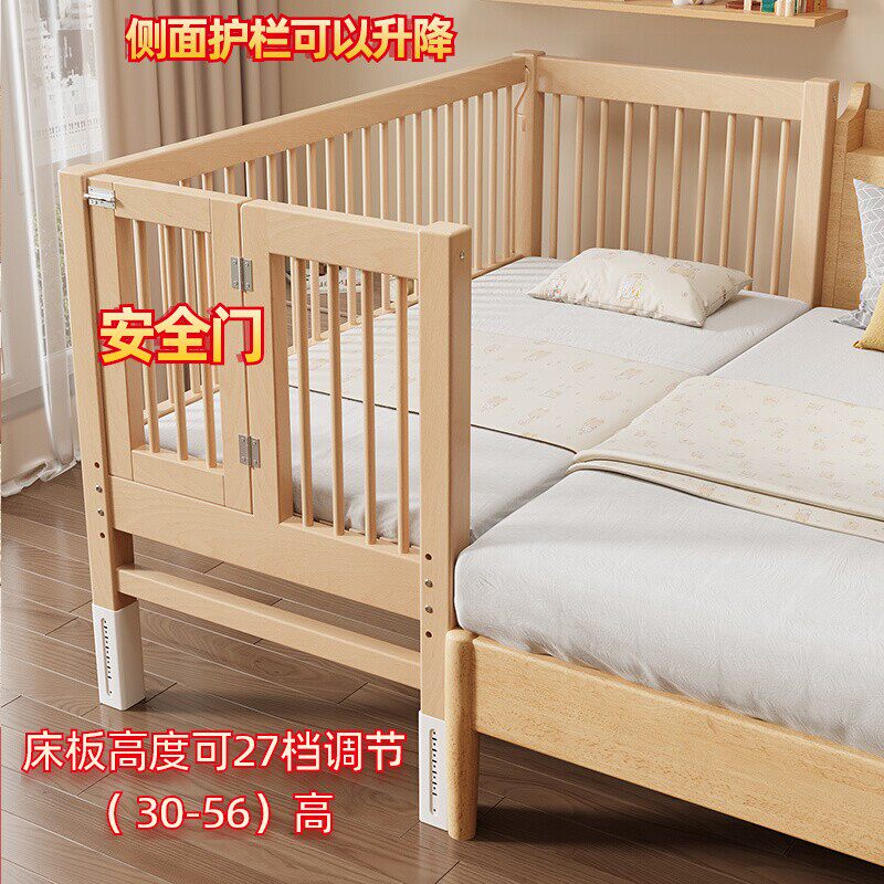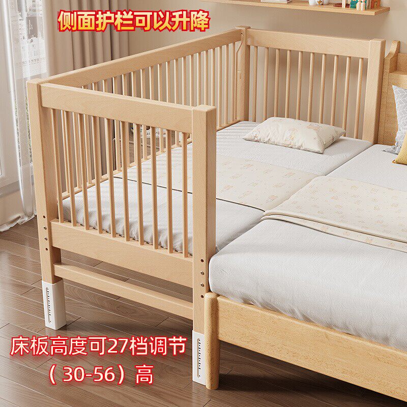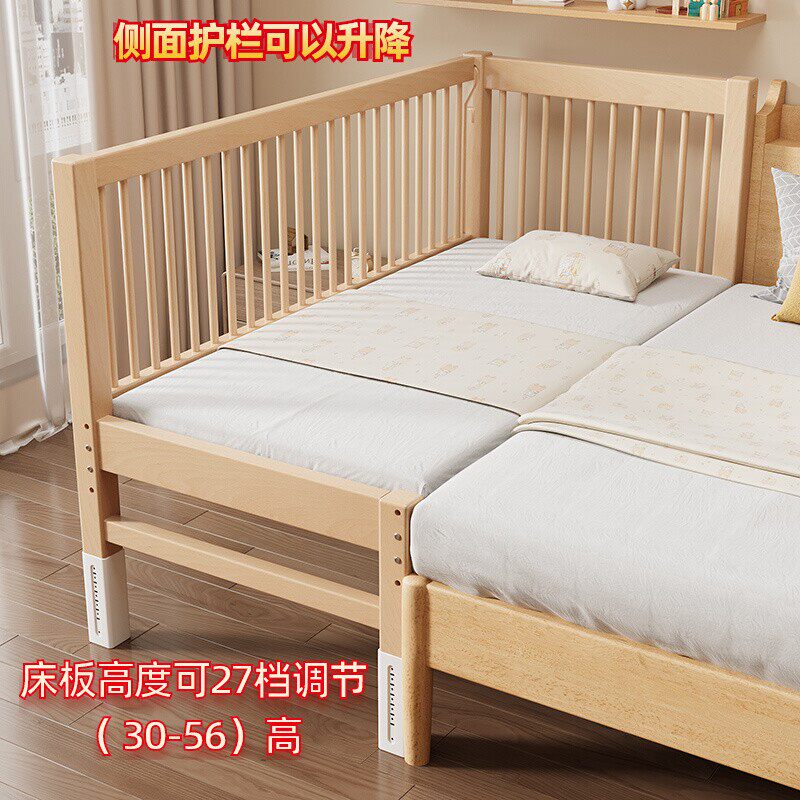 榉木儿童拼接床可以升降儿童床护栏床婴儿床定制床实木床