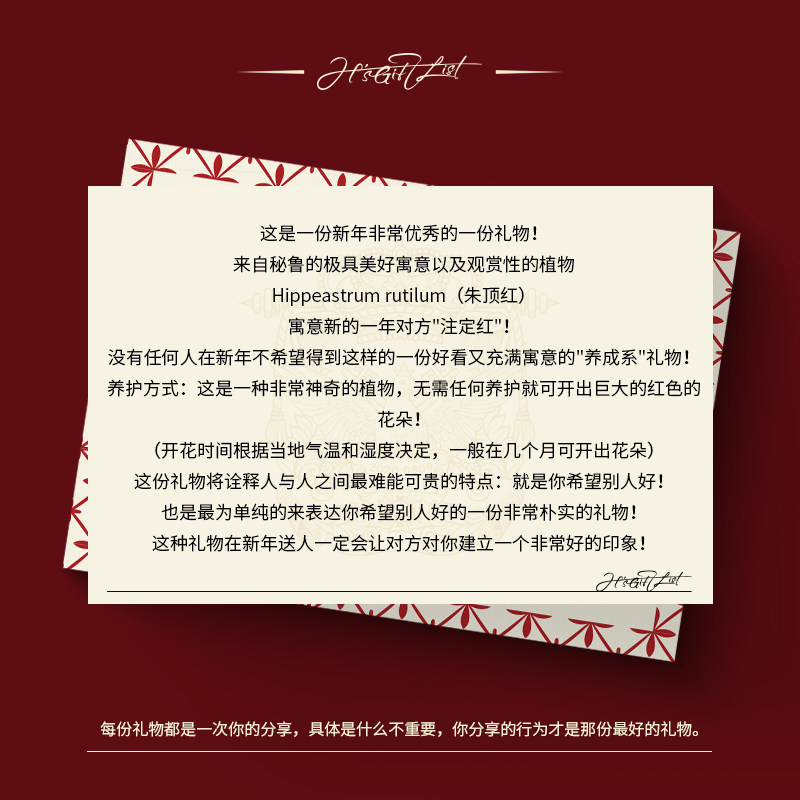交响曲「鸿运当头」摆件生日礼物 2026年秘鲁朱顶红 礼物清单