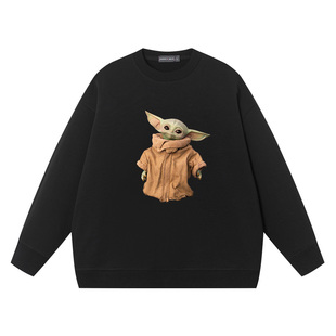 手绘卡通猫狗印花男女重磅嘻哈情侣上衣连帽卫衣 美式 无语猫狗