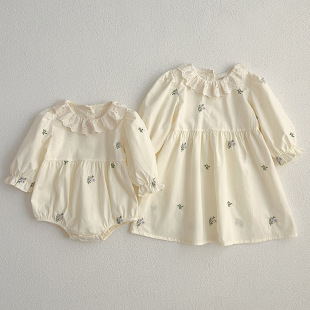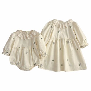 1218 包屁衣连体衣蕾丝领绣花女童连衣裙姐妹装 衣服春新款 女宝长袖