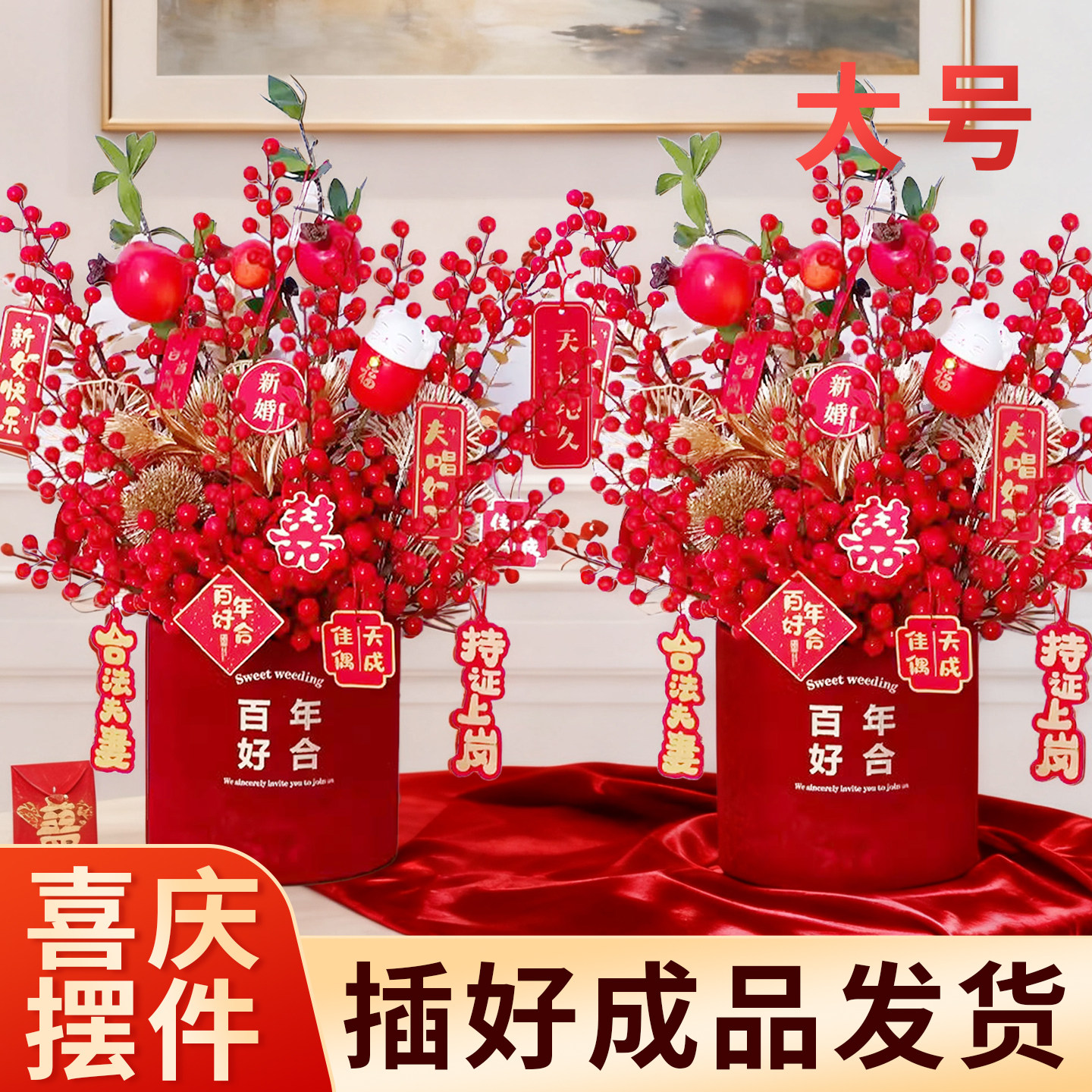 结婚装 饰乔迁之喜花束摆件搬家仿真花过年插花春节年宵花福桶假花