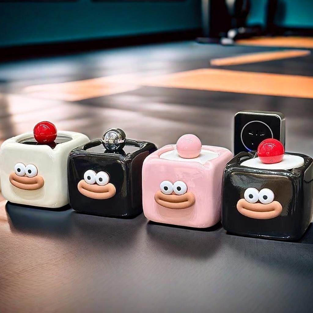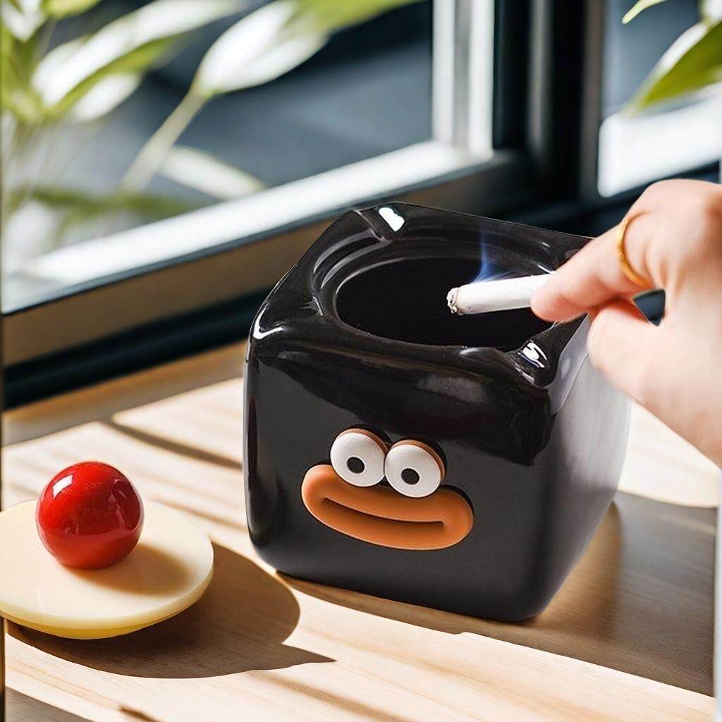 高颜值烟灰缸家用烟缸装 客厅陶瓷创意摆件带盖防飞 饰个性